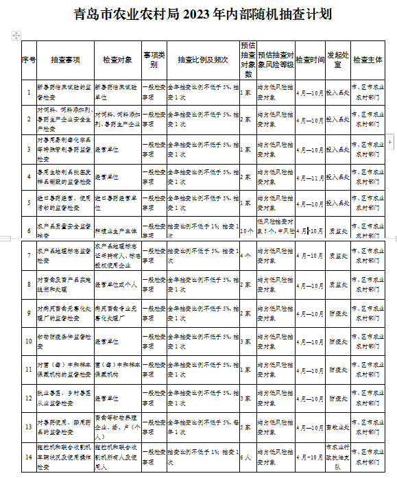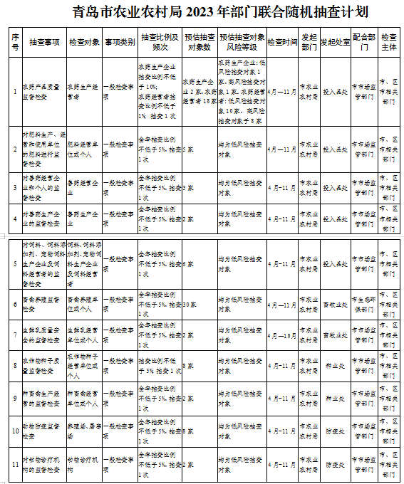 2.正规十大网赌网站农业农村局2023年部门联合随机抽查计划
