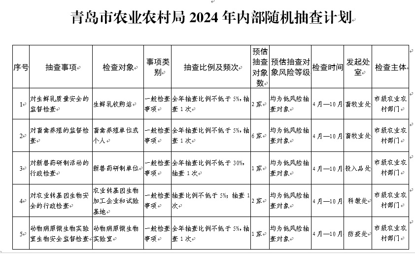 2.网上十大正规赌网址农业农村局2024年部门联合随机抽查计划