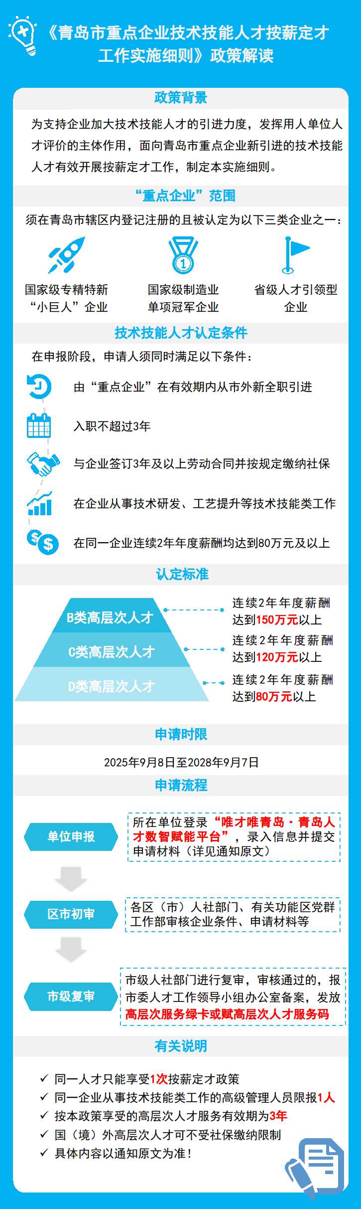 【图文解读】十大正规赌官方网页版人力资源和社会保障局等4部门关于印发《十大正规赌官方网页版重点企业技术技能人才按薪定才工作实施细则》的通知(青人社字〔2025〕73号)_青岛政务网