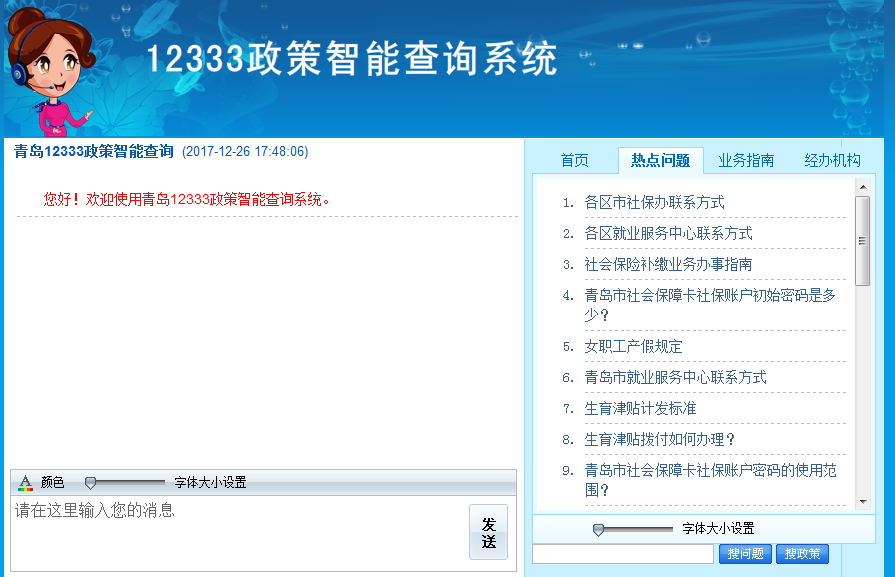 (四)完善12333民生热线呼叫平台。着眼于畅通政民互动渠道、努力提高服务水平环节,以“听民意、聚民智、连民心、惠民生”为核心,深挖服务资源,经过不断探索创新,搭建起集“热线电话、自助语音、在线问政、手机微信、智能咨询、民生信箱”为一体的综合服务平台。通过12333官微推送政策法规、政策解读、办事指南等消息260条,关注人数超19万,阅读人次达180万。更新“12333智询通”政策问答13896条,年访问量12.1万人次,自助答复网民提问42.9万次。12333热线全年累计受理群众来电229.3万个。