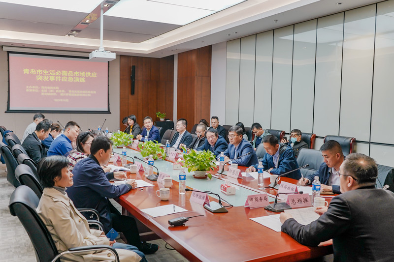 各区(市)商务局、青岛西海岸新区商务局的分管领导及部门负责人,以及胶州市里岔镇政府、福兴祥物流集团等基层政府、重点市场应急供应保障企业代表50余人参加演练。
