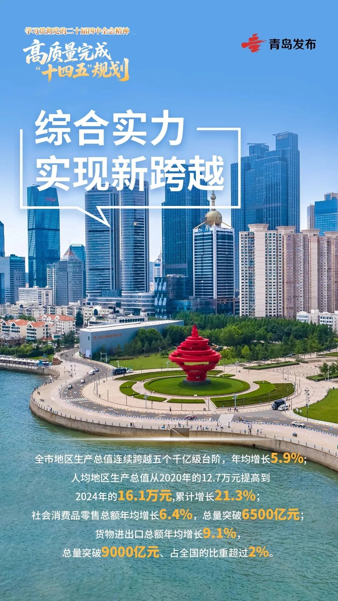 展望“十五五”,将深入学习贯彻党的二十届四中全会精神,科学谋划青岛“十五五”发展蓝图,不断开创现代化国际大都市建设新局面,奋力谱写中国式现代化青岛实践新篇章。