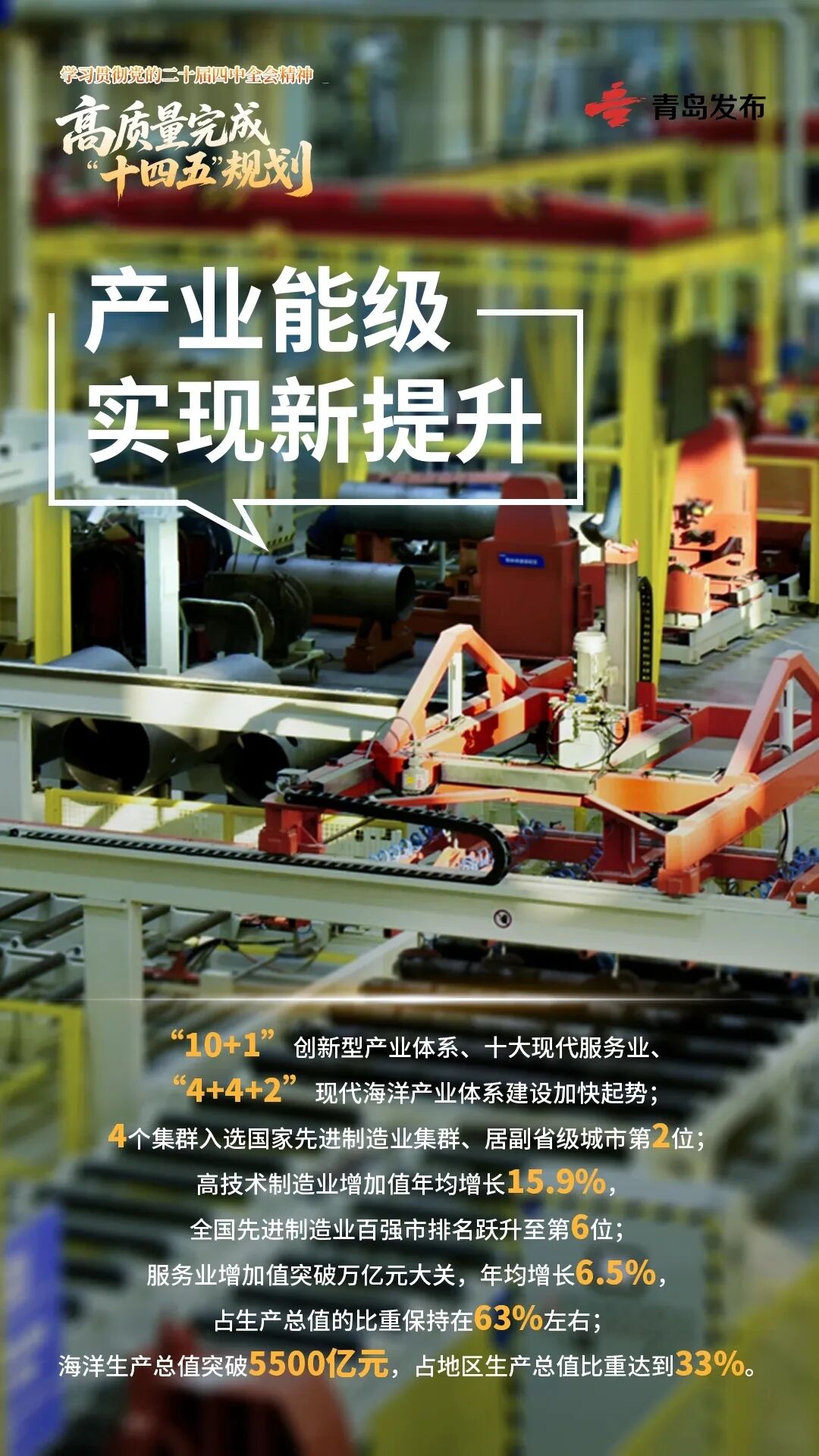再有不到一个月,“十四五”就将收官。五年来,全市上下牢记习近平总书记嘱托,坚持以习近平新时代中国特色社会主义思想为指导,深入贯彻党中央、国务院决策部署和省委、省政府工作要求,锚定“走在前、挑大梁”,统筹做好稳增长、提质效、促改革、惠民生、防风险工作,积极探索中国式现代化青岛实践,以“打头阵、当先锋”的自信与担当,开创了青岛各项事业蓬勃发展的新局面,交出了一份沉甸甸、分量足的发展答卷。