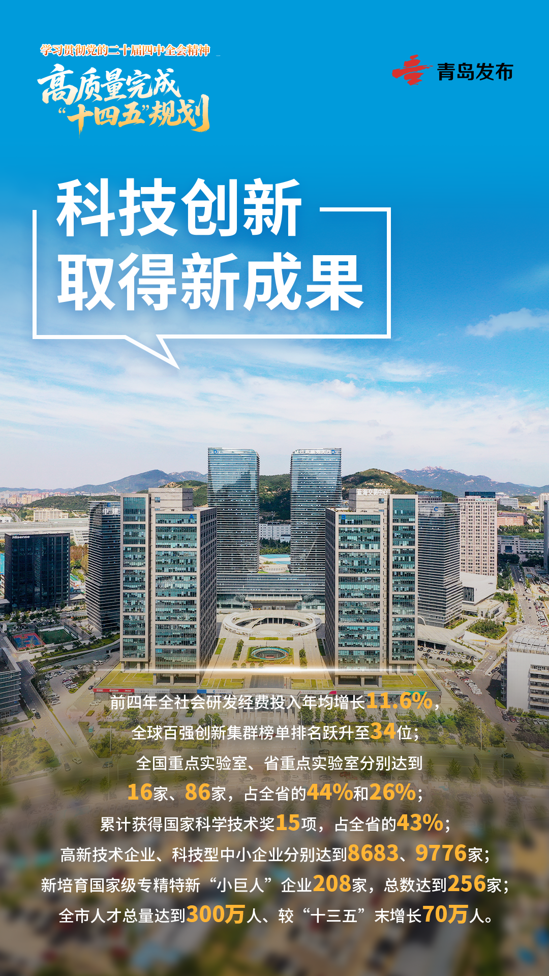 五年来,把科技创新摆在发展全局的核心位置,大力推进科技强市建设,前四年全社会研发经费投入年均增长11.6%,全球百强创新集群榜单排名从2020年的第69位跃升至2025年的34位。