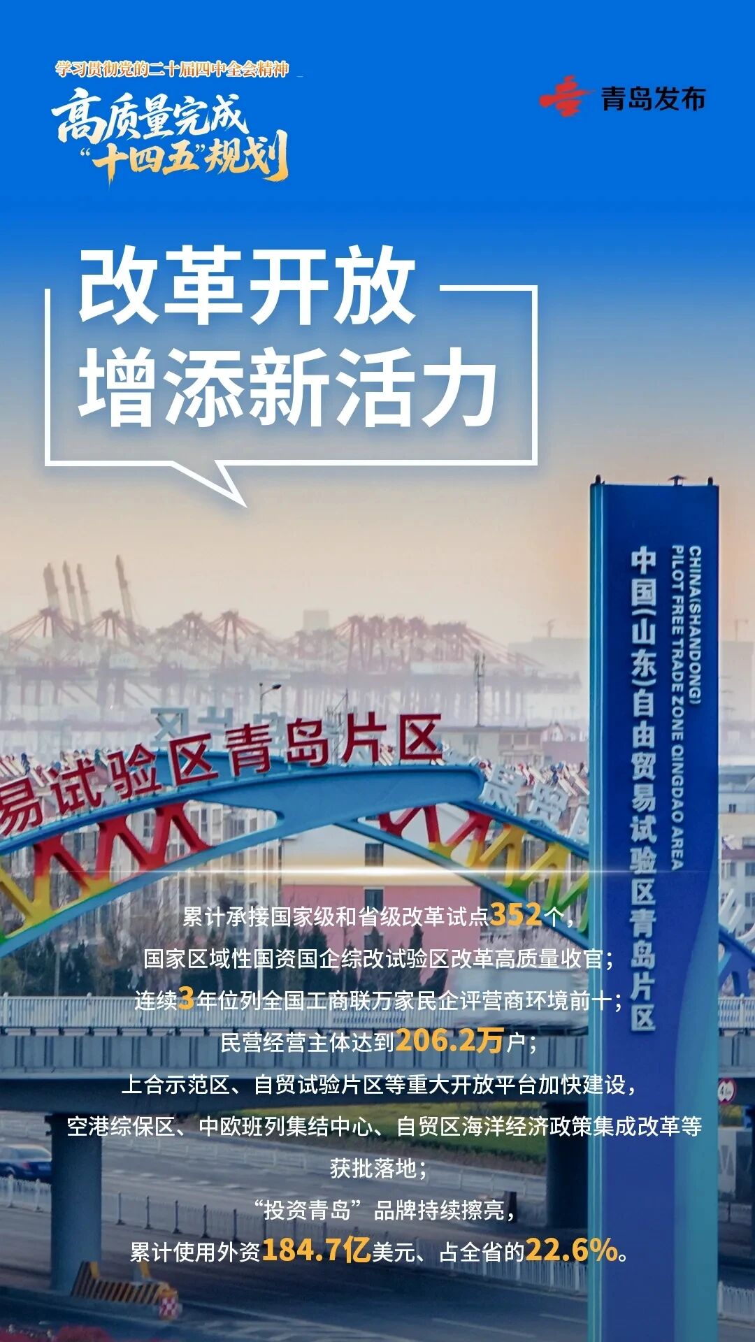 展望“十五五”,将深入学习贯彻党的二十届四中全会精神,科学谋划青岛“十五五”发展蓝图,不断开创现代化国际大都市建设新局面,奋力谱写中国式现代化青岛实践新篇章。