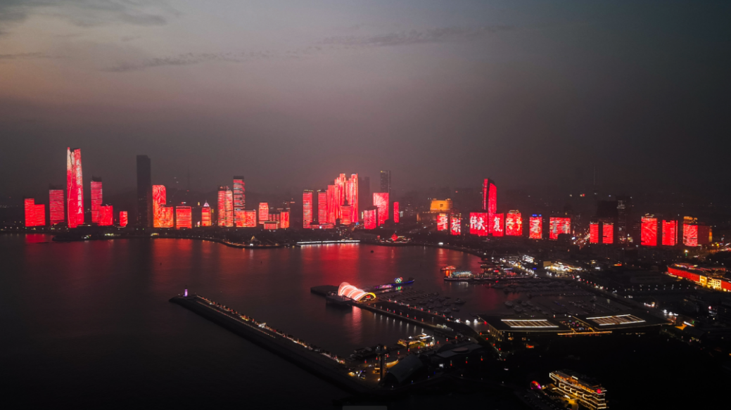 市南区持续激发消费潜力,开展“好品聚市南精彩消费年”等促消费活动,浮山湾灯光秀推出“大美中国”主题秀及中秋主题秀,与青岛风光主题等灯光秀编组播放,为市民游客营造浓厚的节庆氛围。“大美中国”主题灯光秀分四个篇章,以绿水青山为底色,伴随红绸丝带飘动,一幕幕展现祖国的发展成就,传递大美中国的家国情怀。