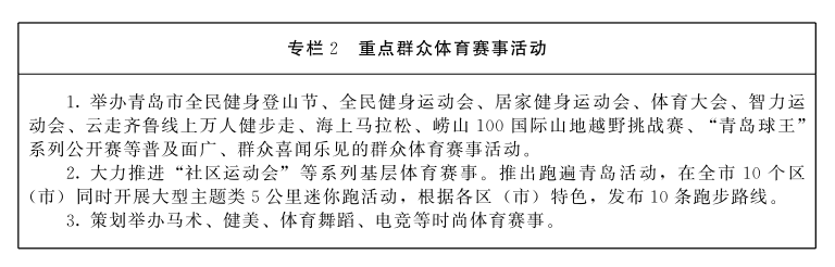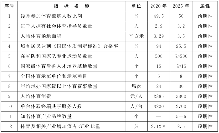 “十四五”时期青岛体育发展主要指标