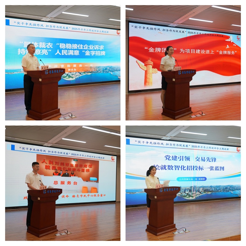 会上,局机关和中心各处室负责人逐一上台做盘点、讲不足、谈打算,4名在营商环境一线的业务骨干分别围绕持续擦亮全国“人民满意的公务员”工作室招牌、“金牌团队”的“金牌服务”、践行市民中心“第一排面”使命、绘就数智化招投标一张蓝图等主题展开述讲,谈认识、亮做法、讲收获。