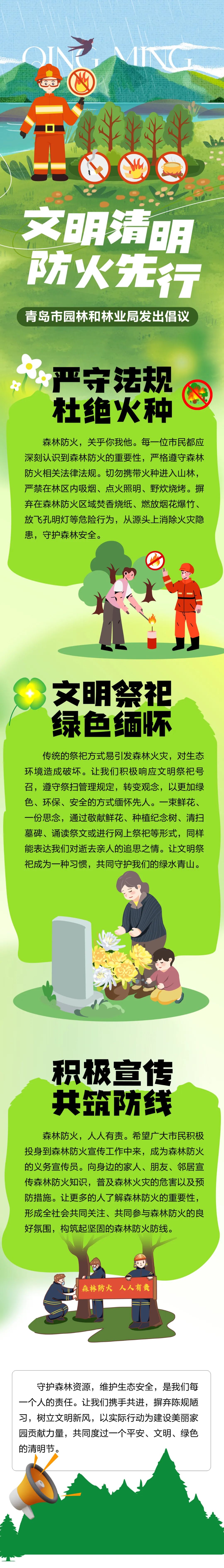守护森林资源,维护生态安全,是我们每一个人的责任。让我们携手共进,摒弃陈规陋习,树立文明新风,以实际行动为建设美丽家园贡献力量,共同度过一个平安、文明、绿色的清明节。