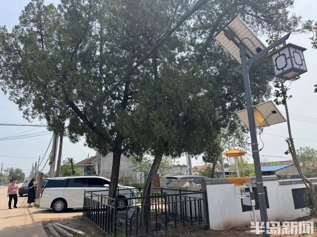 当然,古树公园的细节之处也很用心,记者发现公园内有三组太阳能诱虫灯。一根灯杆上有两个太阳能板,一个是为路灯供电,一个是为诱虫灯供电。诱虫灯的四周布满铁丝,下方是塑料桶,用作收集昆虫。据了解,诱虫灯有两个作用,一是吸引昆虫,防止有害昆虫对古树造成伤害。二是提高村民晚上来公园的舒适度,减少蚊虫叮咬。