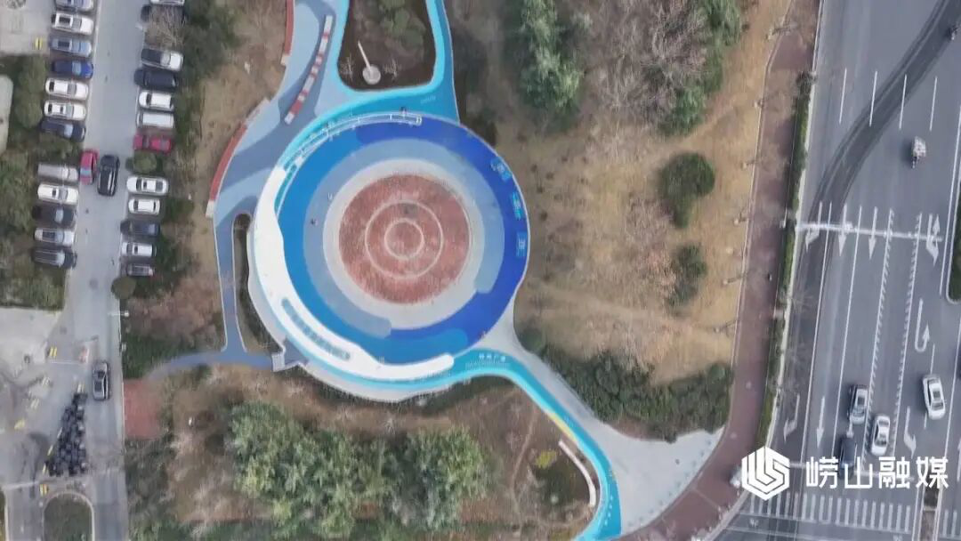 崂山区城市管理局园林绿化管理科工作人员 龚利军:劲松五路口带公园在改造提升后,在功能空间上分成南北两区,北区以动为主,有篮球场健身设施等;南区以静为主,有休闲廊架座椅等能满足市民对不同室外活动的需求。