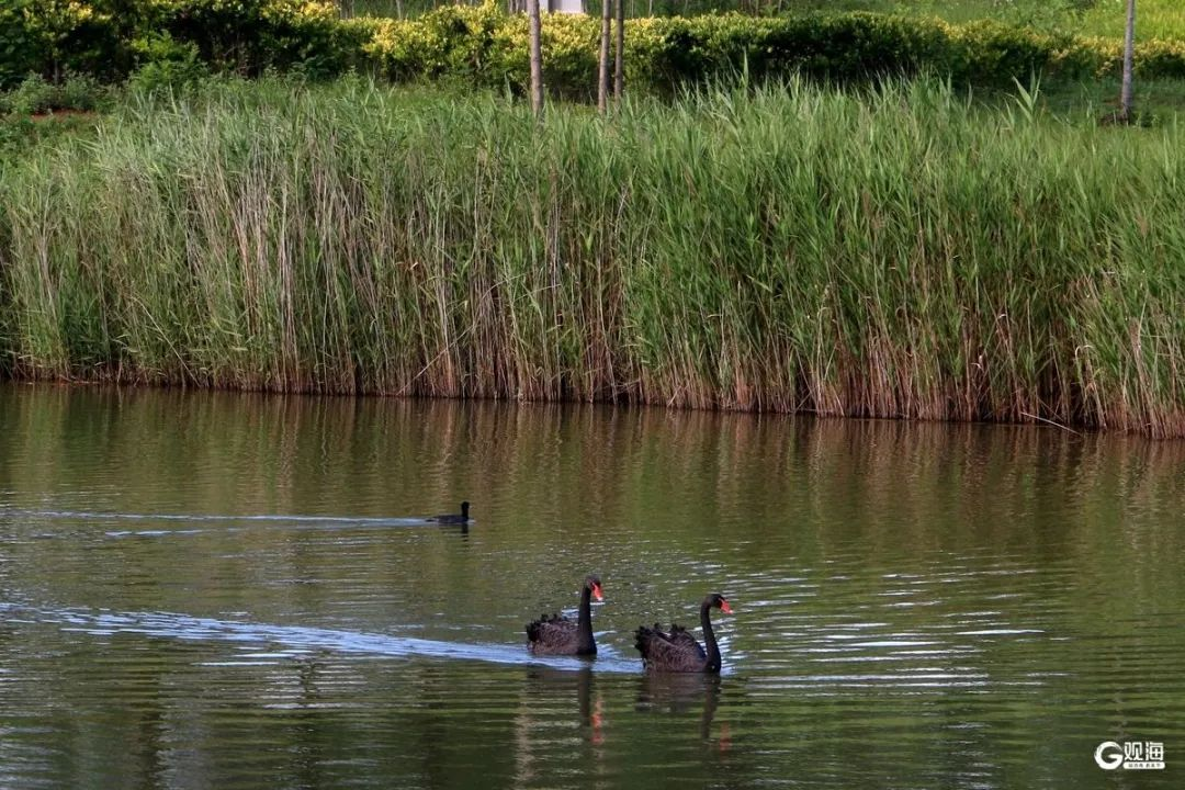 晶莹的水珠从碧绿的叶尖滑落,坠入澄澈的湖面,漾起圈圈涟漪。黑天鹅优雅地游弋在波光粼粼的水面,它们时而低头梳理羽毛,时而将脖颈弯成优美的弧度,轻啄水面,荡开层层碎银般的涟漪。芦苇荡间,鸟儿欢快地啼鸣,清脆的声音此起彼伏,似是在为这场夏雨的停歇而欢唱。