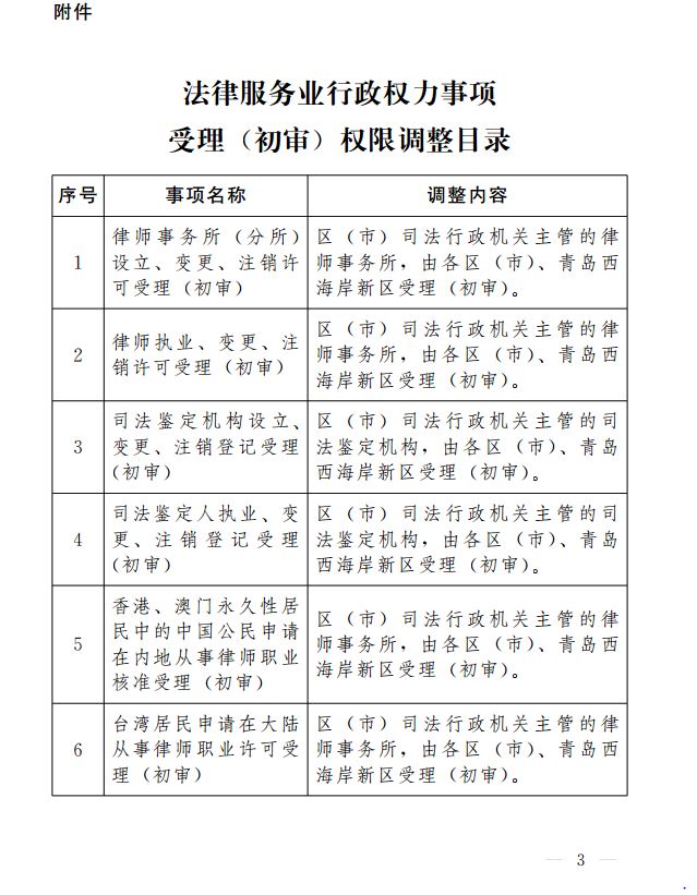 为了加快推进政府职能转变,根据《中华人民共和国行政许可法》《山东省人民政府关于调整实施部分省级行政权力事项的决定》(省政府令第333号)等法律法规规章规定,十大正规赌官方网页版决定,将由市本级实施的法律服务业行政权力事项受理(初审)权限,调整由各区(市)人民政府、青岛西海岸新区管委实施。