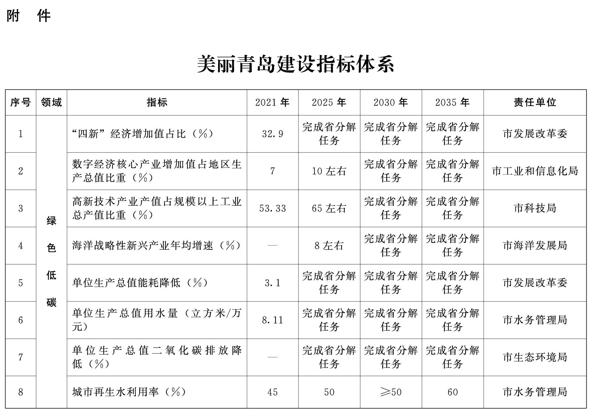 1.到2025年,人与自然和谐共生的美丽青岛建设取得明显成效。