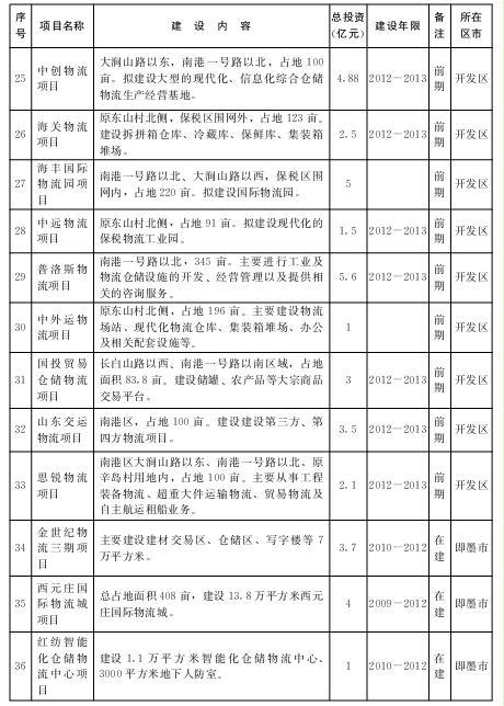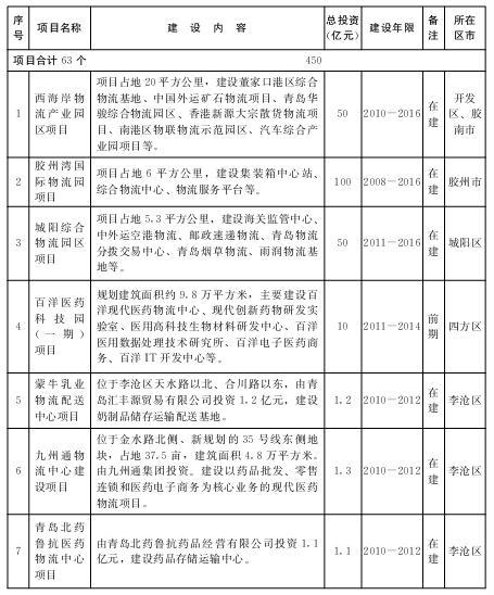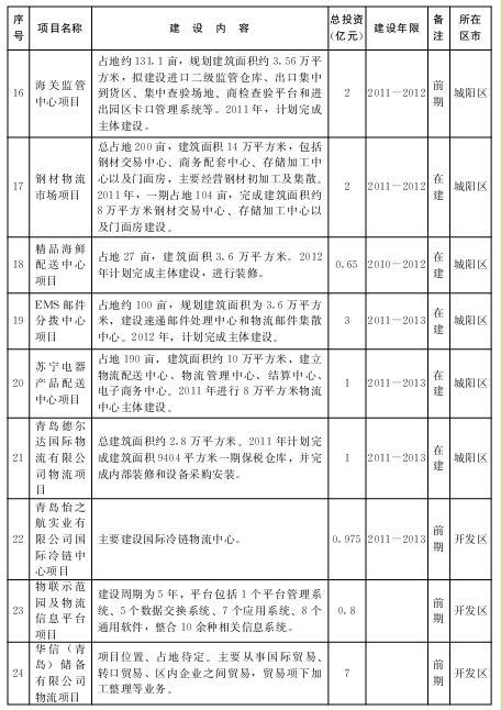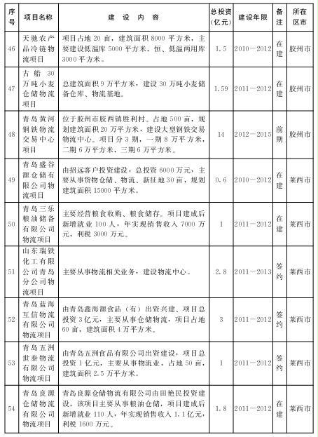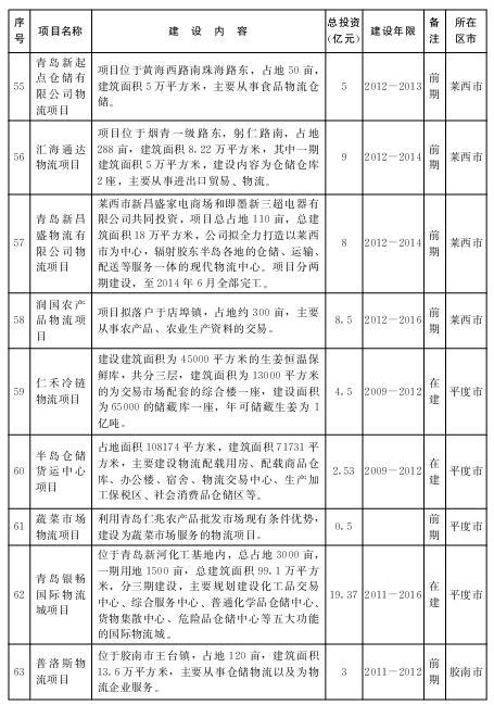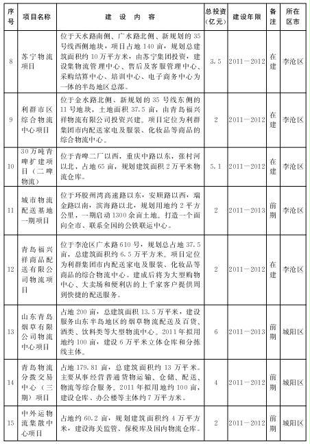 2.“十二五”期间规划推进的重点物流业项目