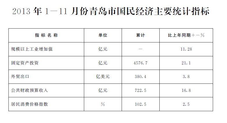 2013年1-11月份正规十大网赌网站国民经济主要统计指标_青岛政务网