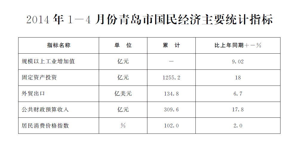 2014年1-4月份正规十大网赌网站国民经济主要统计指标_青岛政务网