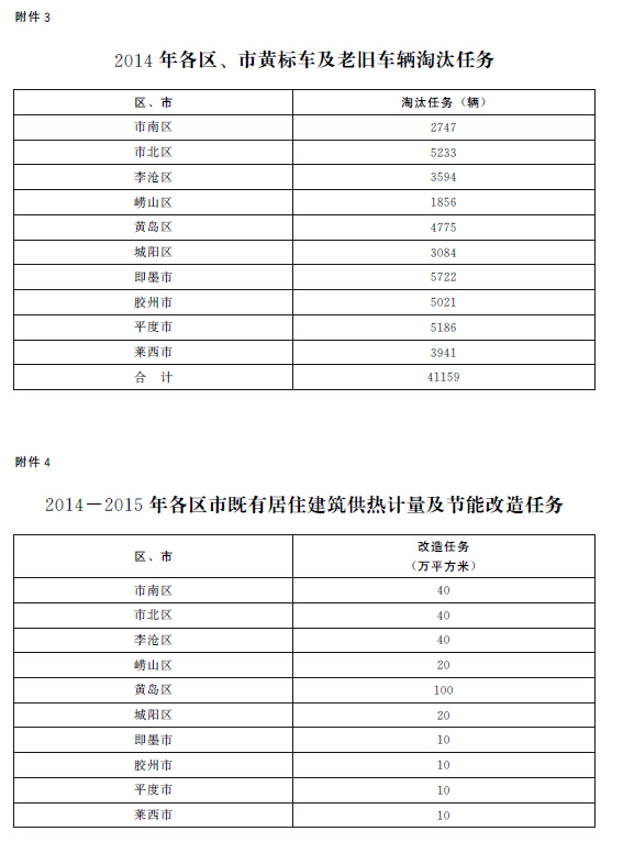 (七)加大机动车减排力度。2014年年底前,在全市供应国四标准车用汽油和柴油,淘汰黄标车和老旧车41159辆(具体任务附后)。加强机动车环保管理,强化新生产车辆环保监管。加快柴油车车用尿素供应体系建设。