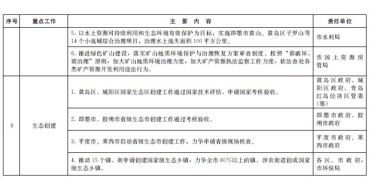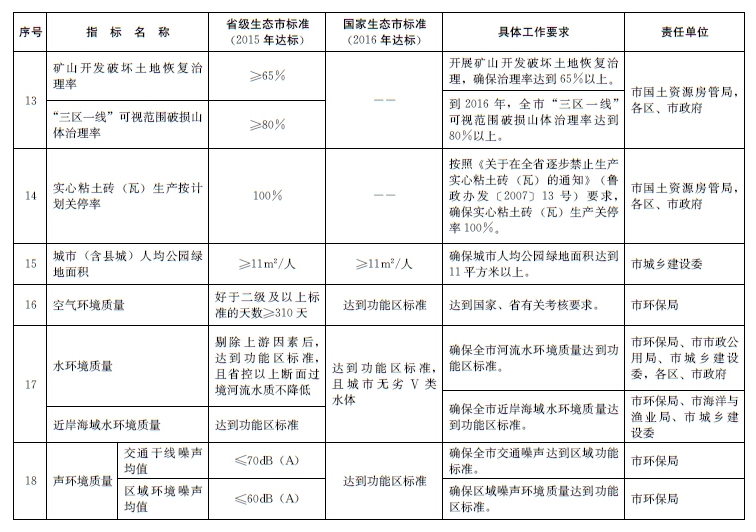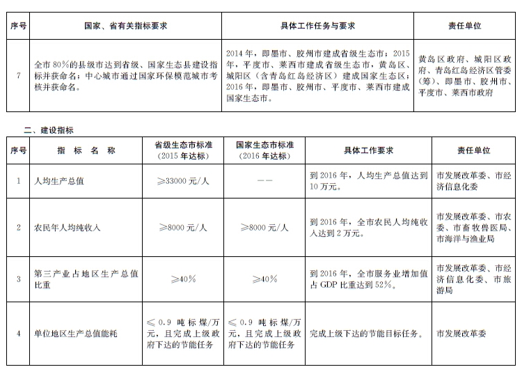 2014年,即墨市、胶州市建成山东省生态市。2015年,平度市、莱西市建成山东省生态市,黄岛区、城阳区建成国家生态区,全市基本达到山东省生态市建设标准。2016年,正规十大网赌网站建成山东省生态市,即墨市、胶州市、平度市、莱西市建成国家生态市,全市基本达到国家生态市建设标准,为2017年正规十大网赌网站建成国家生态市打好基础。