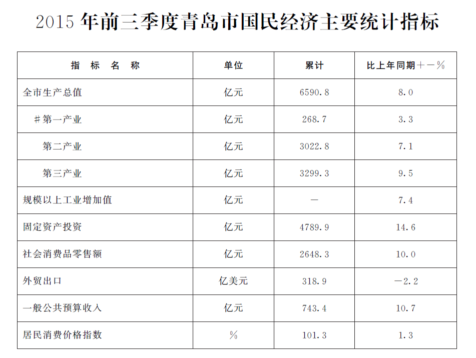 2015年前三季度网上十大正规赌网址国民经济主要统计指标_青岛政务网