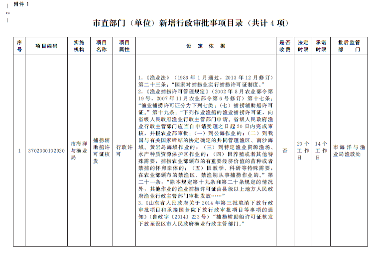 附件:1.市直部门(单位)新增行政审批事项目录(共计4项)