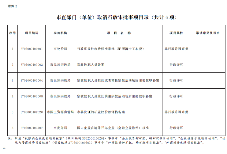 2.市直部门(单位)取消行政审批事项目录(共计6项)