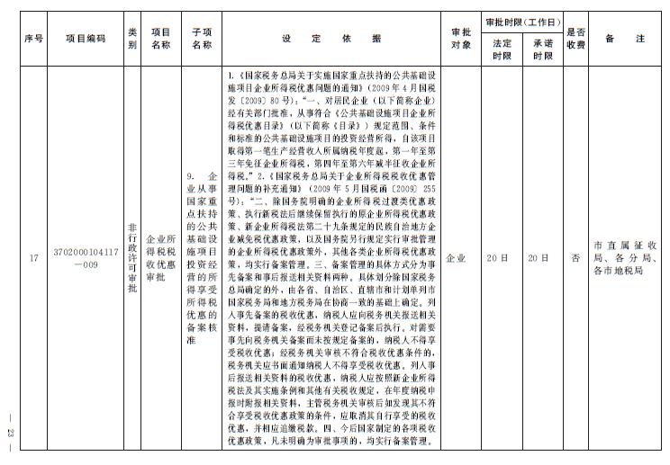 3.市国家安全局、市地税局行政审批事项目录(共计23项)