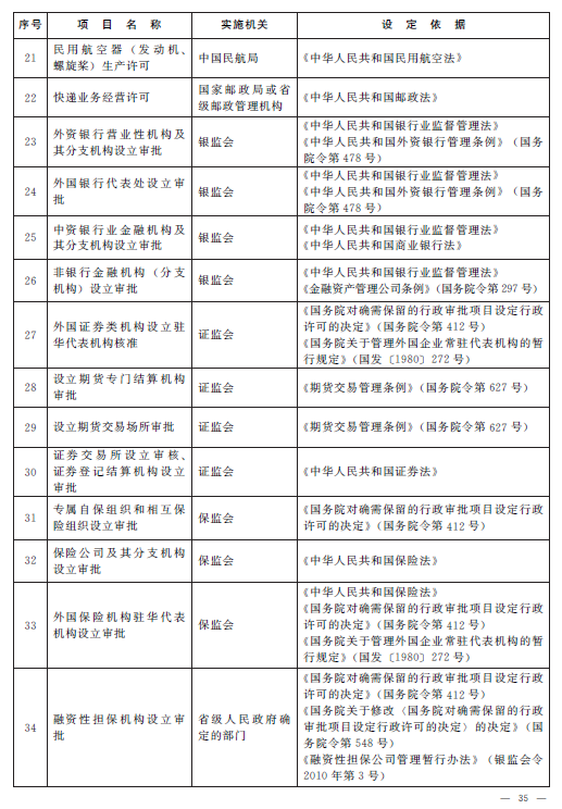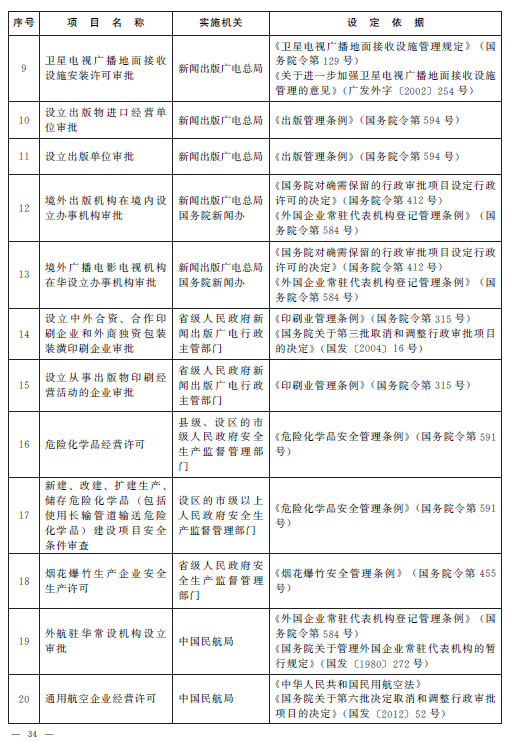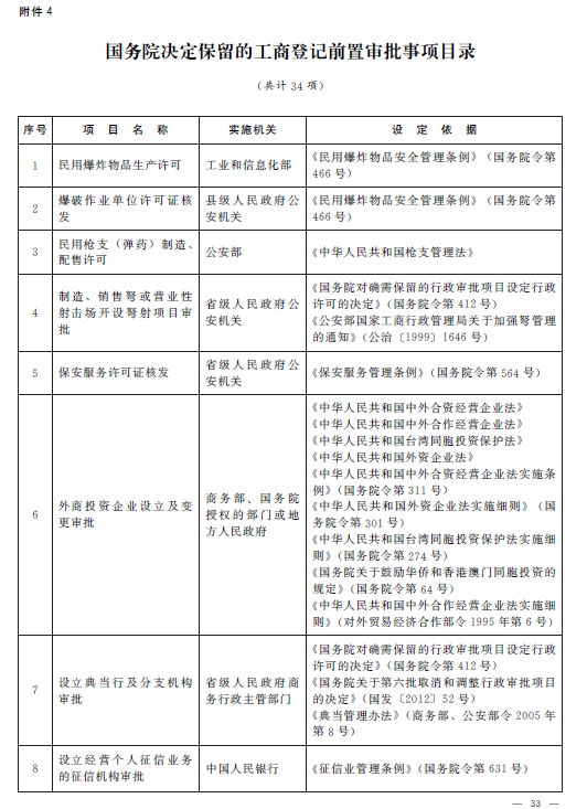 4.国务院决定保留的工商登记前置审批事项目录(共计34项)