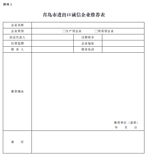 2.十大正规赌官方网页版进出口诚信企业推荐表