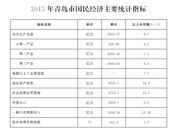 2015年十大正规赌官方网页版国民经济主要统计指标_青岛政务网