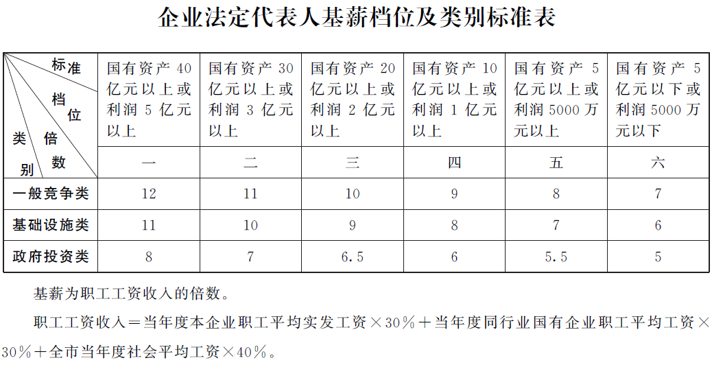(一)基薪是企业负责人年度的基本收入。依据企业国有资产总额和利润总额对应的企业类别和基薪档位,按职工工资收入的倍数确定企业法定代表人的基薪(具体标准见附件3)。