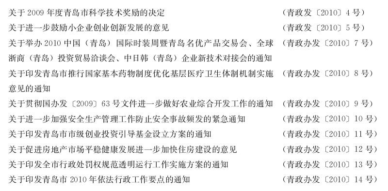 2010年3—4月份正规十大网赌网站办公厅发文目录_青岛政务网