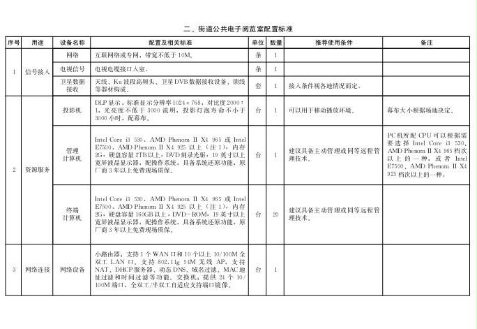 1.提升已建电子阅览室的硬件水平。根据公共电子阅览室的功能定位和服务要求,重点提升文化共享工程市、区市级支中心及其以下电子阅览室的硬件水平。