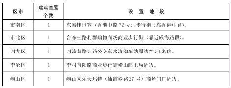 (三)规划建设固定献血屋(点)。2012年至2015年,规划在每个区市选择交通便利、人流密集的繁华商业区域,各设置1处面积为80平方米左右的永久性固定献血屋(非亭体)(地点和标准附后),为群众提供便捷、舒适、温馨的献血环境。