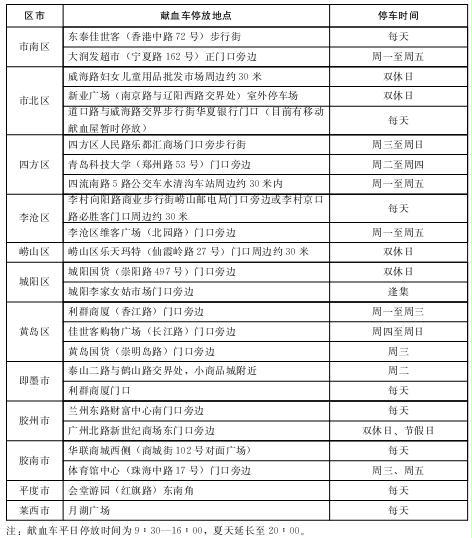 4.正规十大网赌网站献血车停放地点和时间安排