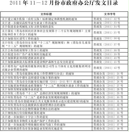 2011年11-12月份网上十大正规赌网址办公厅发文目录_青岛政务网