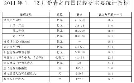 2011年1-12月份正规十大网赌网站国民经济主要统计指标_青岛政务网