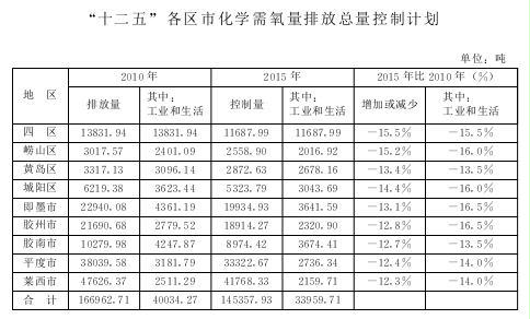 2.“十二五”各区市化学需氧量排放总量控制计划