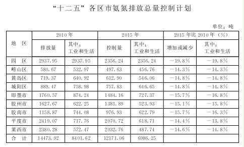 3.“十二五”各区市氨氮排放总量控制计划