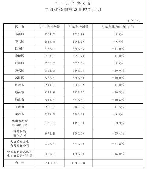 4.“十二五”各区市二氧化硫排放总量控制计划