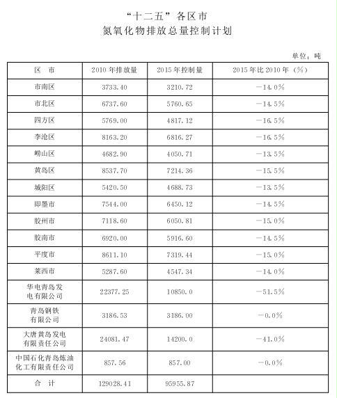 5.“十二五”各区市氮氧化物排放总量控制计划