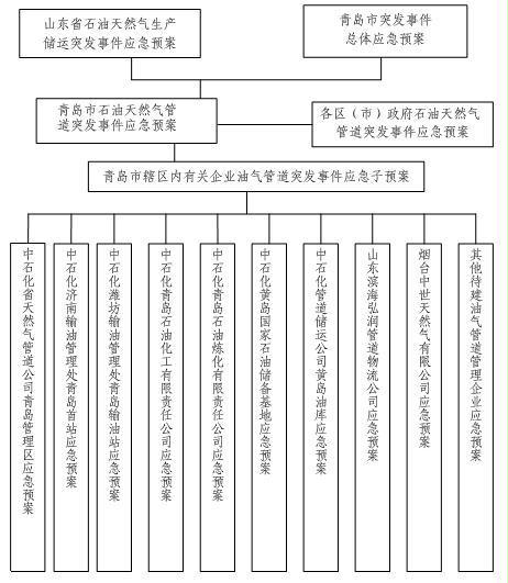 构建与省应急预案体系联动的市、区(市)、企业三级应急预案体系,各有关区(市)和管道企业要结合各自实际,分别制定专项应急子预案,并报市应急指挥部办公室备案。