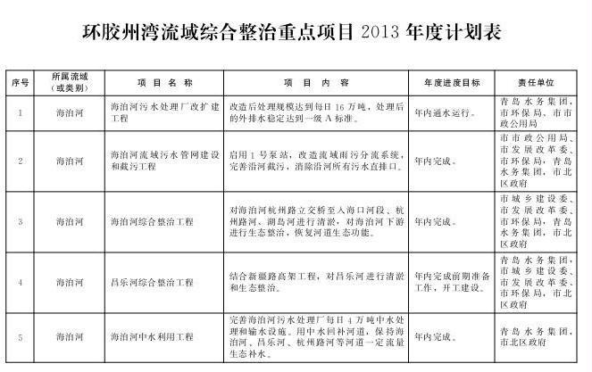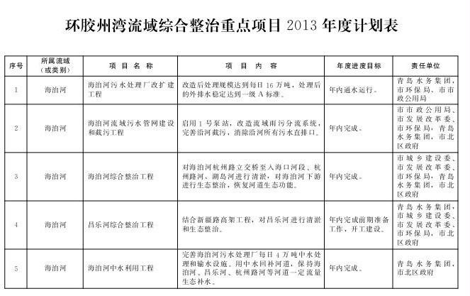 附件:环胶州湾流域综合整治重点项目2013年度计划表