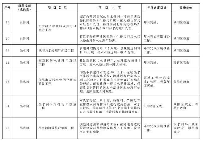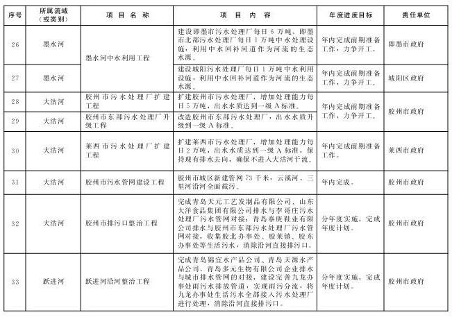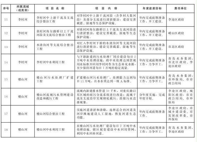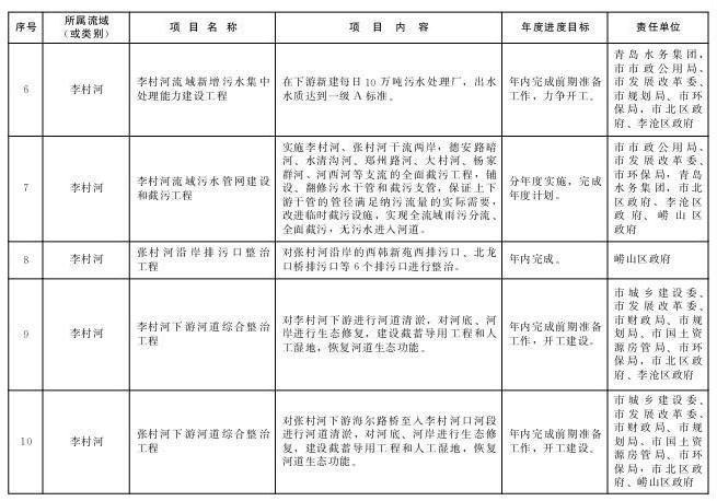 责任部门:李沧区政府、城阳区政府,青岛水务集团,市市政公用局、市环保局