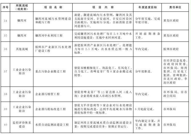 责任部门:青岛水务集团,市环保局、市市政公用局