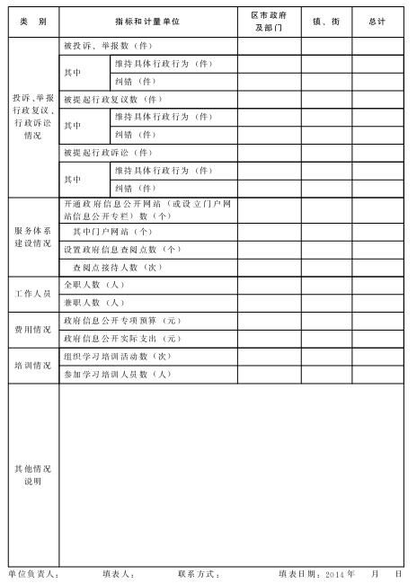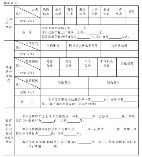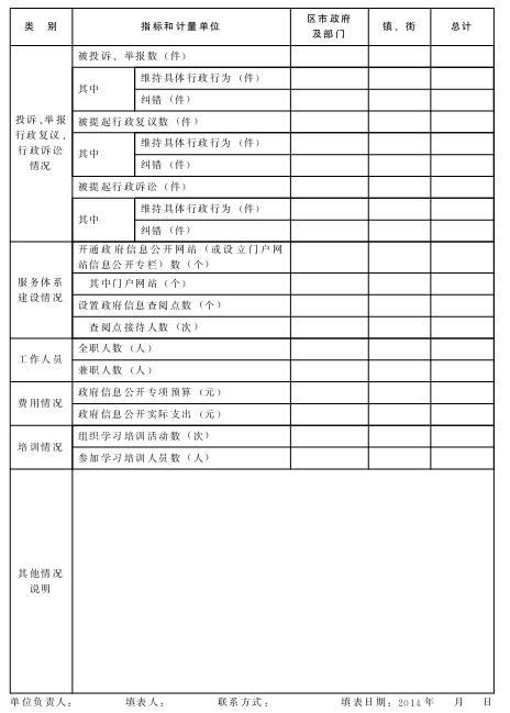 (一)各单位编制好年度报告后,经本单位主要领导审核签发,加盖单位公章,于2014年1月31日前报市十大正规赌官方网页版办公室(香港中路17号市级机关3号办公楼709房间,联系人:王萌琳,联系电话:85912130)备案。各部门、各单位金宏电子政务网中已有“政务公开信息管理系统”的,请在该系统“年度报告和年度报表”中直接填报;请各区市通过金宏电子政务网将年度报告相关报表发送到网上十大正规赌网址十大正规赌官方网页版办公室。