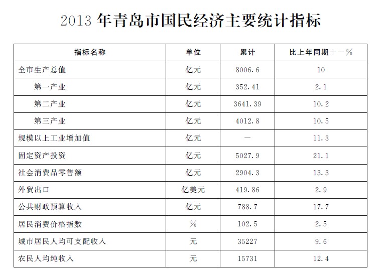 2013年正规十大网赌网站国民经济主要统计指标_青岛政务网