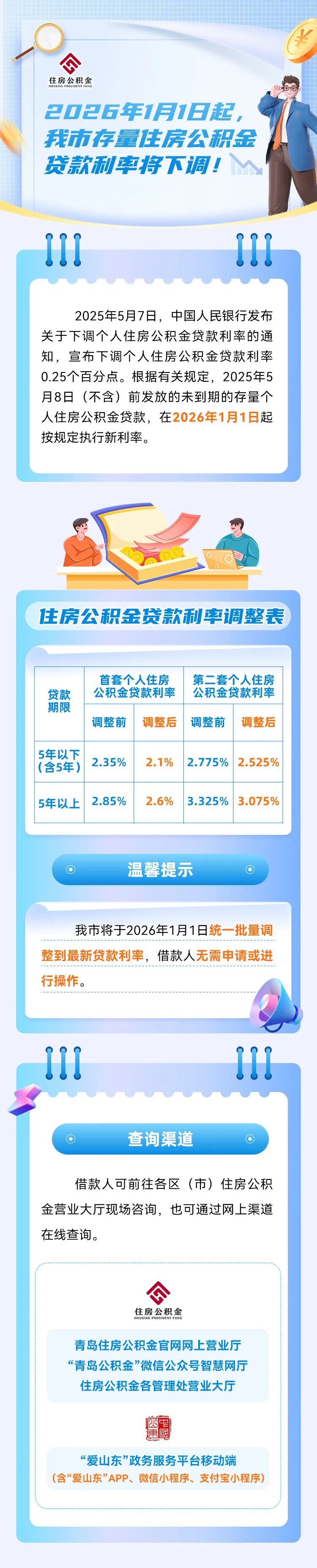 2026年1月1日起,我市存量住房公积金贷款利率将下调!_青岛政务网