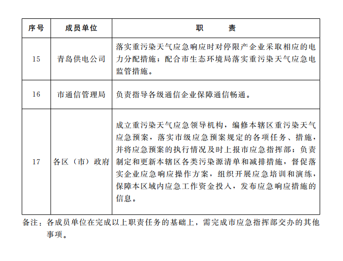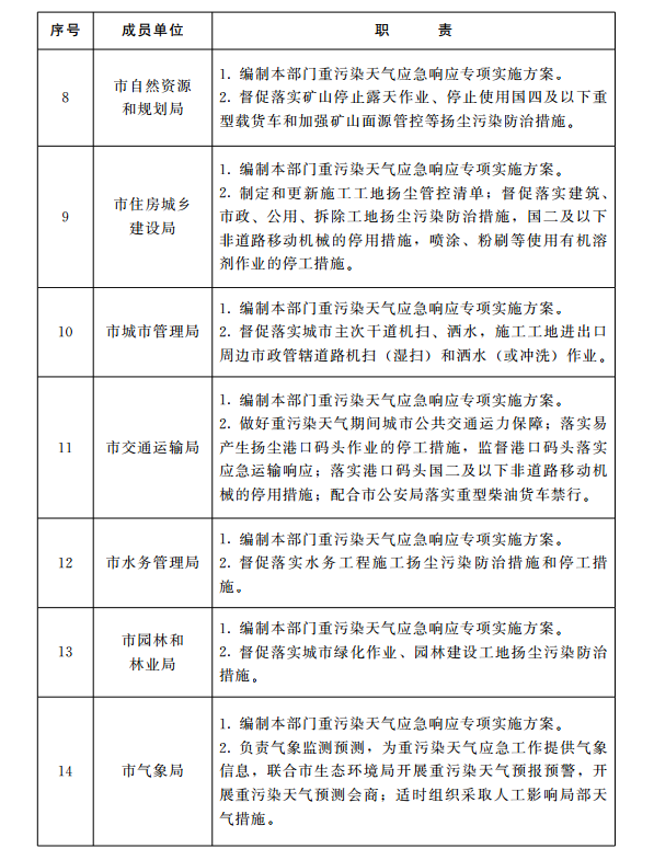 十大正规赌官方网页版重污染天气专项应急指挥部各成员单位职责分工表